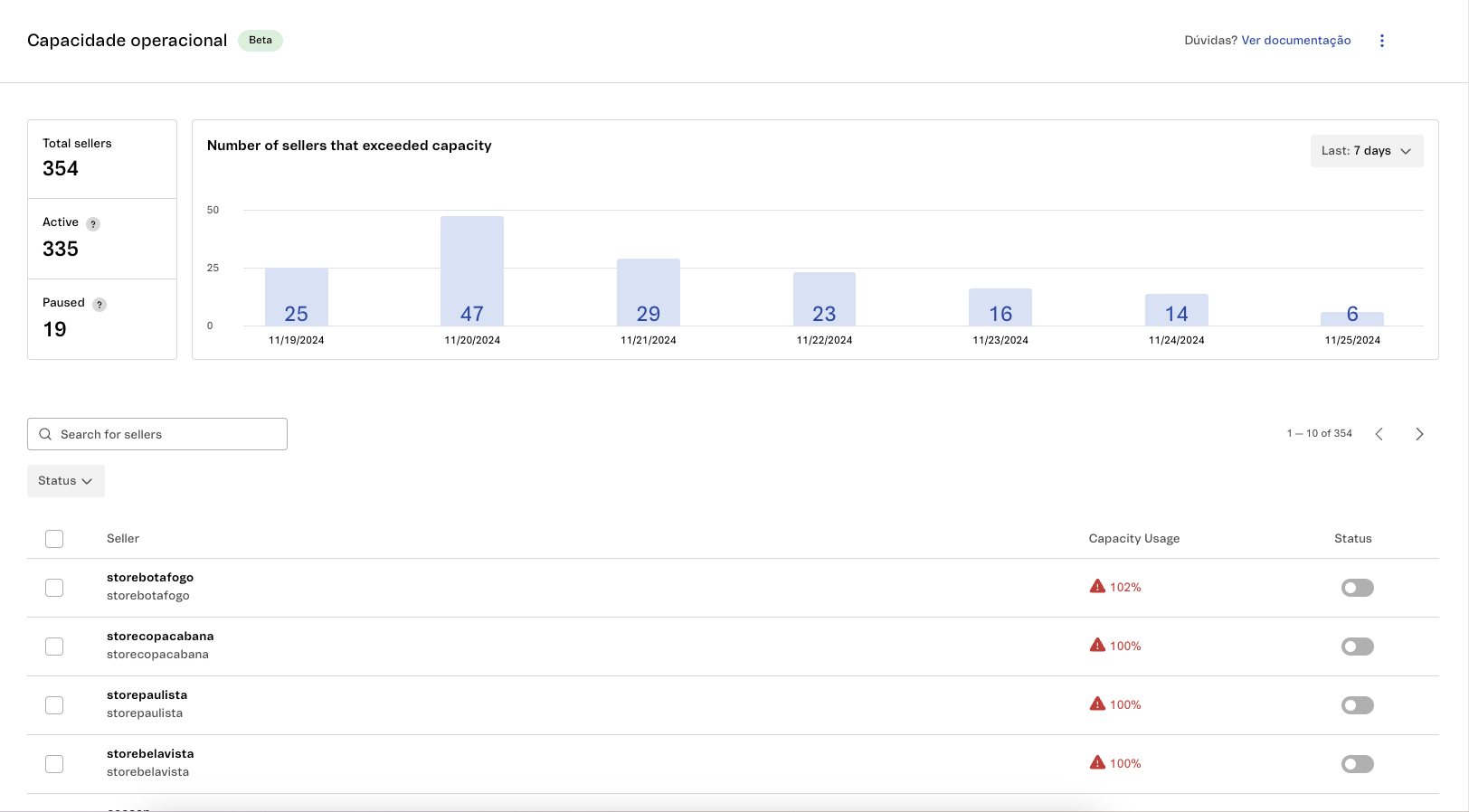 VTEX is launching the new Operational Capacity (Beta) module, designed to help retailers manage the capacity of sellers to receive and handle orders. This tool allows you to monitor order distribution among sellers and make adjustments to optimize operational flow, promoting a more efficient logistics network.