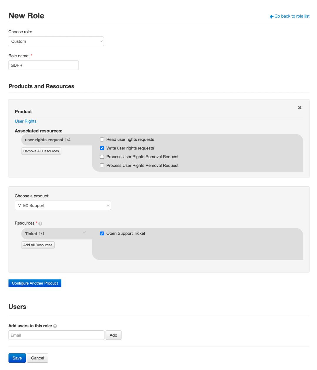 Only authorized merchants will be able to request customer data deletion through Copilot. To grant this permission, you will need to create a custom role named General Data Protection Law with the following resources from License Manager: