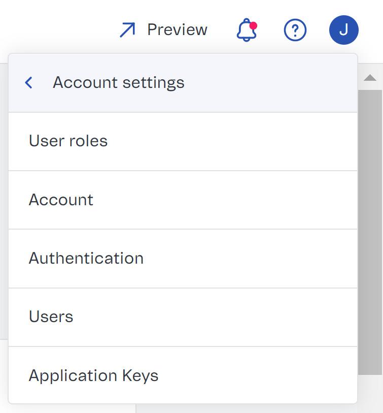 - Go to the Account page by clicking your profile avatar that has the first letter of your email, and then on Account Settings > Account.