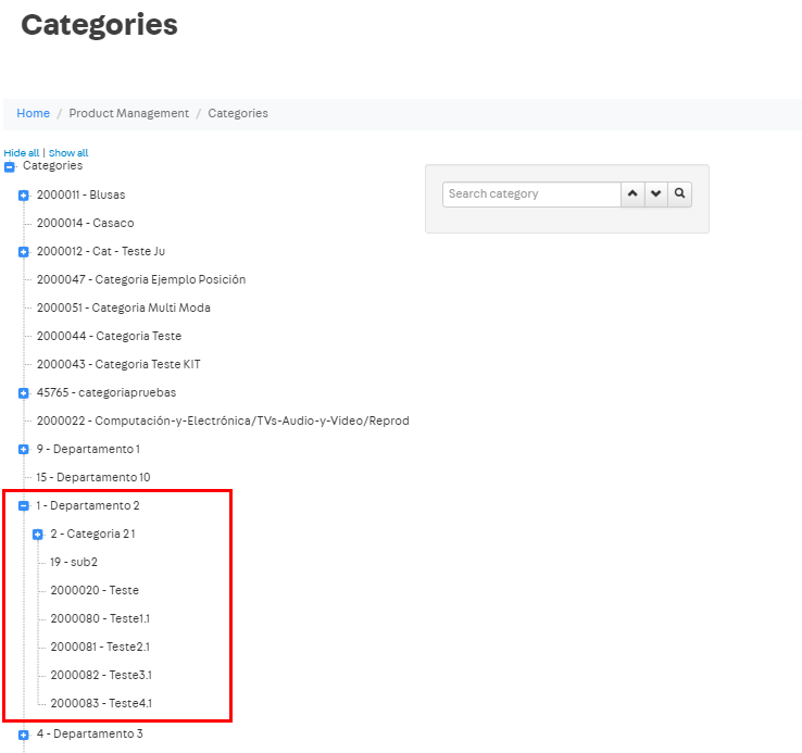The Lista Completa link on the Categorias menu is frequently used in stores that have a large number of categories. This avoids the page showing an enormous list of Categories, cluttering up the screen.
