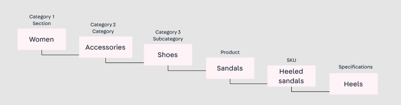 Category is the second categorization level of your store, under Departments — sections or sectors that categorize the areas of your business. Categories are essential for classifying your products.