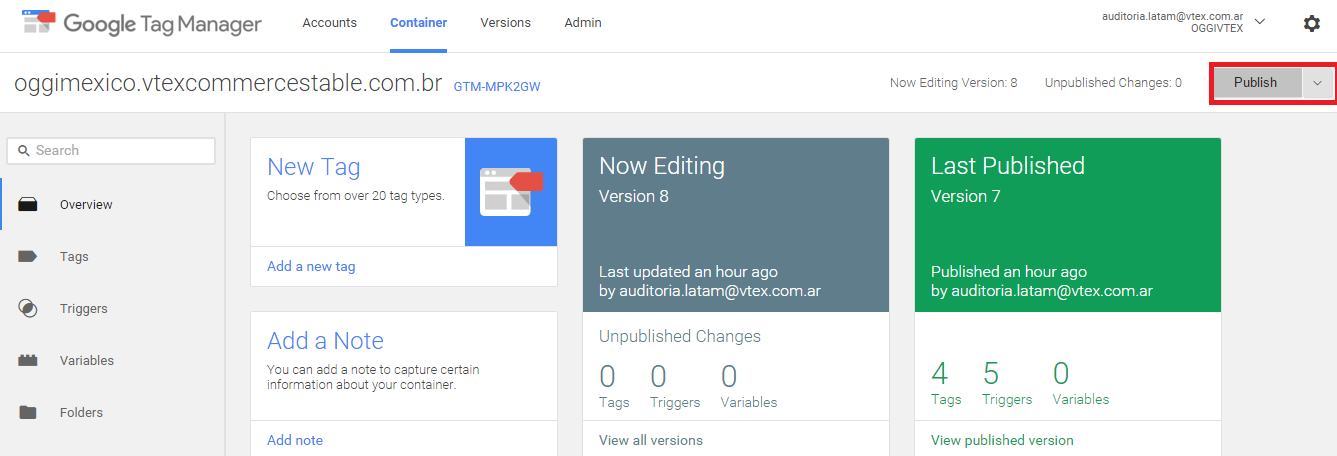 - Once the tag has been saved, it is necessary to publish it: