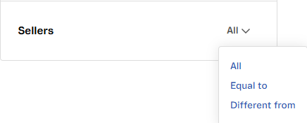 • Different from: Select this option to exclude specific sellers from the promotion. After selecting "Different from", you can choose the sellers you don't want to include in the campaign. All other sellers will be included.