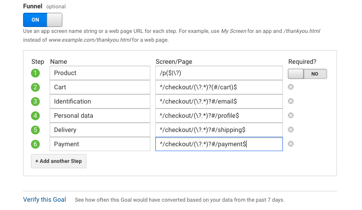 Google Analytics goals are meant to help you evaluate whether your site's goals are being met. This article will show you how to set up a conversion goal, known as Sales Funnel, in stores that use VTEX SmartCheckout. To learn more about goals, visit the conversion topic in Google Analytics Help.
