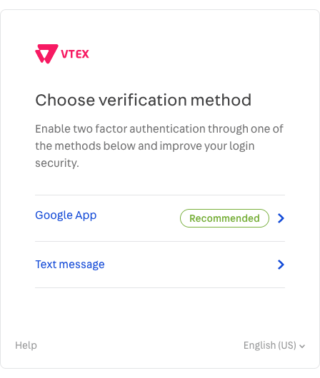 Two-factor authentication (2FA) is mandatory in the VTEX Admin.