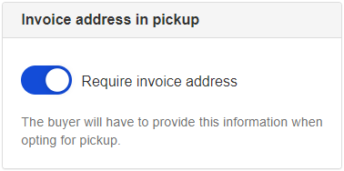 > ⚠️ The option of Invoice address in pickup must be enabled in all stores in Brazil, as it is a requirement that the invoice issued contains the customer's address information, even if the option to delivery of the order is at the pick-up point. The address filled in by the customer will be recorded in the invoiceData field of the orderForm.