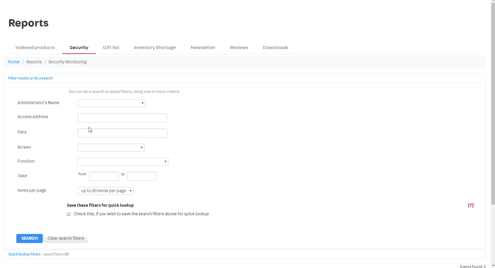 The Security Report is where the changes affecting the product register are recorded. Its main function is to offer the storeowner the possibility of verifying the author of certain changes over a specific period of time.