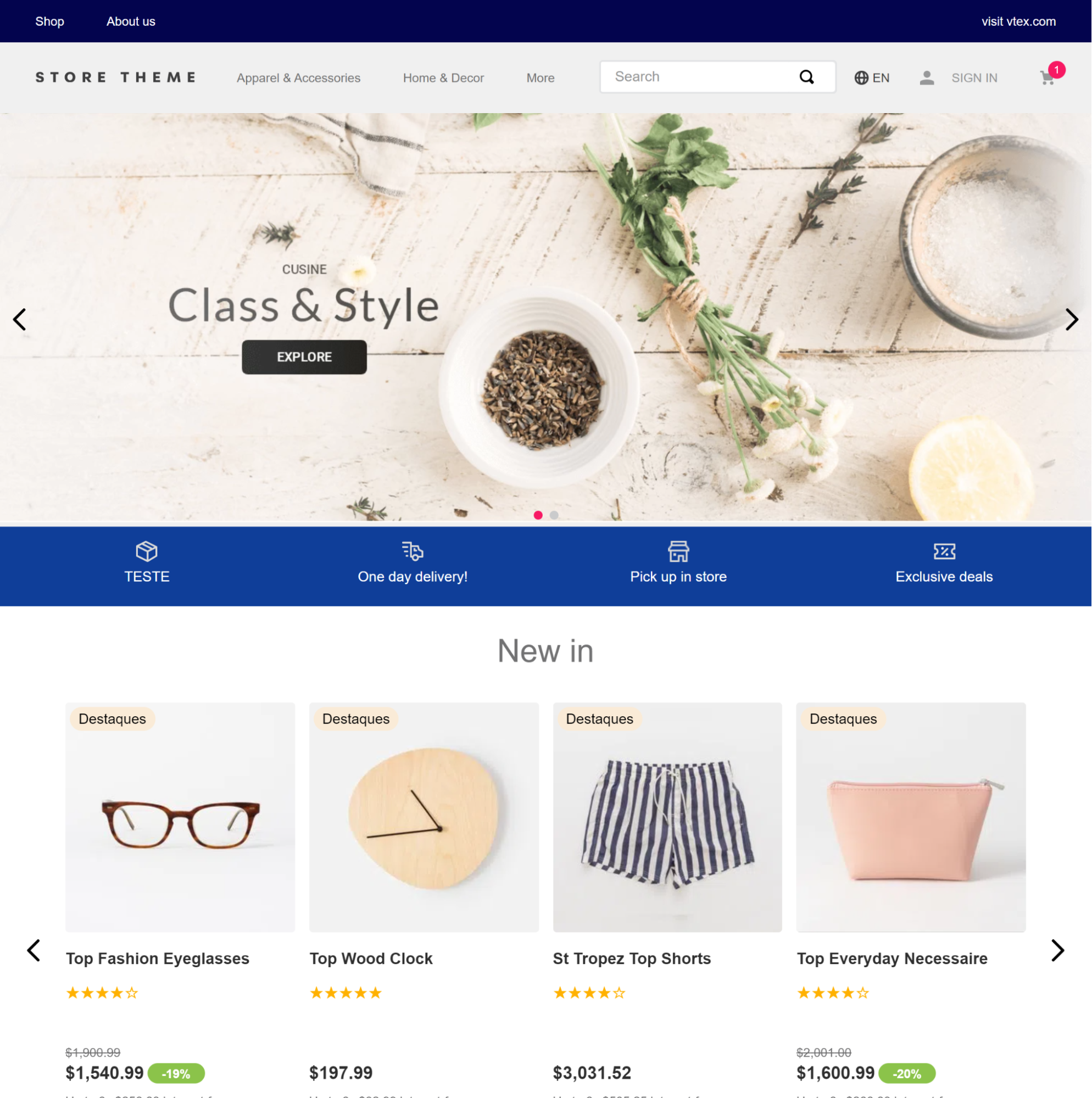 El equipo de desarrollo debe iniciar un nuevo proyecto con Store Framework clonando y asociando el Store Theme en un workspace de desarrollo. Store Theme es una plantilla funcional básica para iniciar una tienda con componentes esenciales y páginas como: