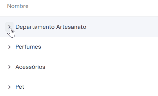 La página de categorías muestra los niveles más externos de las categorías. Haz clic en el ícono para acceder a las subcategorías, como se muestra a continuación.
