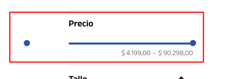 Este es un rango de precios, es un deslizador y tiene dos selectores (marcadores), uno para el mínimo y otro para el máximo para saber dónde posicionarse en el deslizador. Al aplicarle un filtro de marca el selector no moverá su valor mínimo a los valores mínimos de la marca, mantendrá el valor mínimo por defecto y el marcador aparecerá fuera del rango.