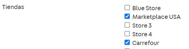 En el ejemplo anterior, el producto solo estará disponible para los canales de venta que utilicen las políticas comerciales «Carrefour» y «Marketplace».