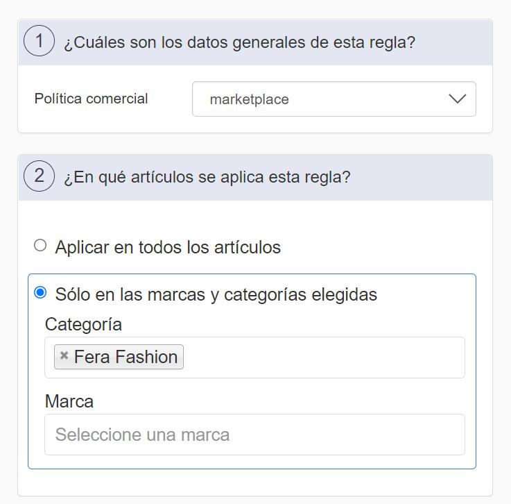 En el ejemplo anterior, la regla de precios aplicó un markup a la política comercial «Marketplace» para los productos de la categoría «Fera-Fashion».