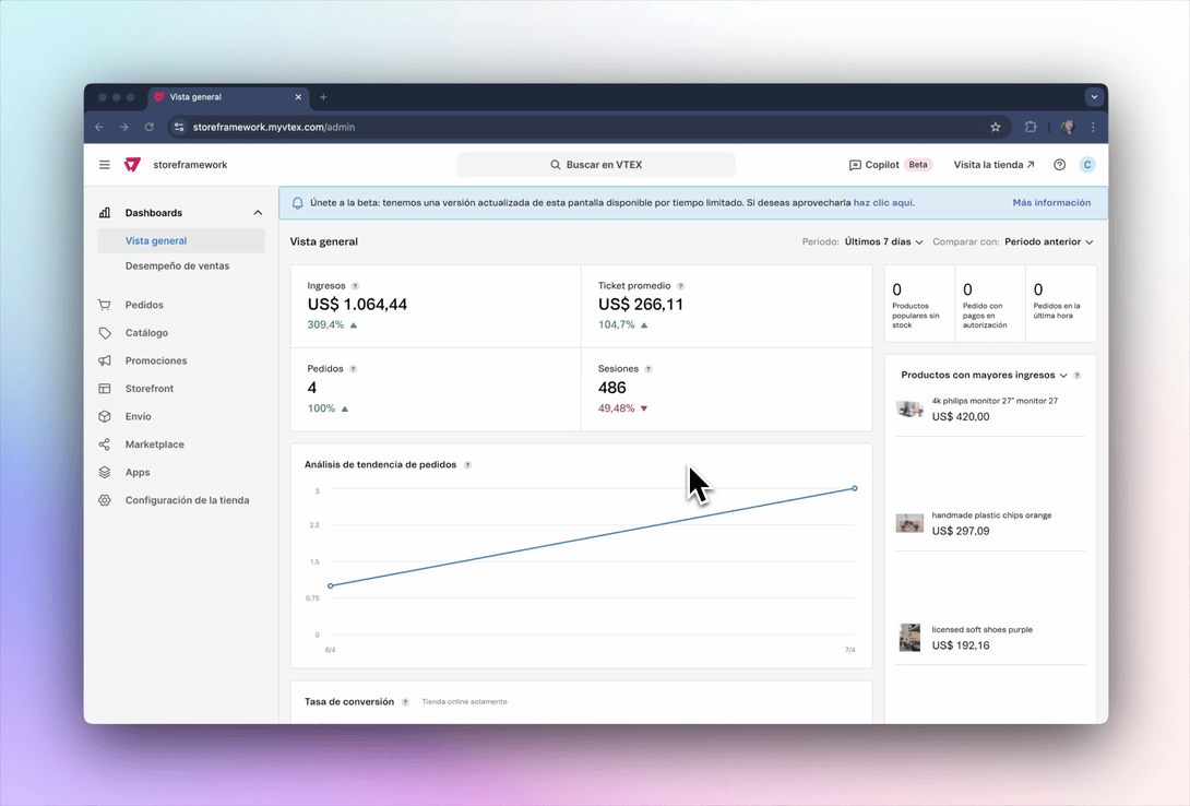 1. Inicia sesión en el Admin VTEX con un usuario que tenga el rol Ley General de Protección de Datos.