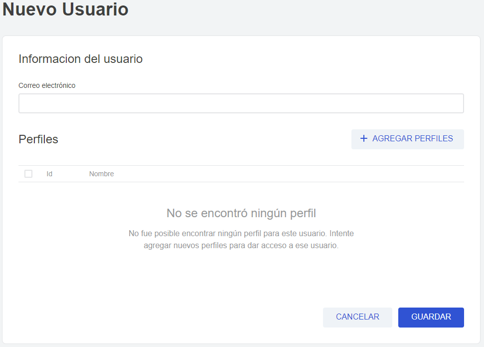 + Nuevo. - Rellene el campo Email.