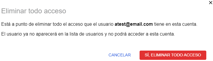- Para remover el acceso de un usuario, haga clic en botón con tres puntos al lado del usuario que desea eliminar.