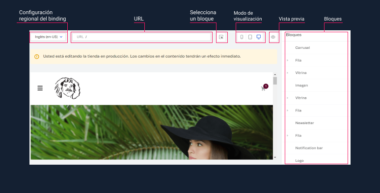 | Vista previa | Verifica previamente la versión del contenido de tu storefront en el Site Editor. |