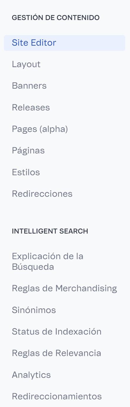 Estas operaciones se realizan en el menú Storefront de tu Admin VTEX.