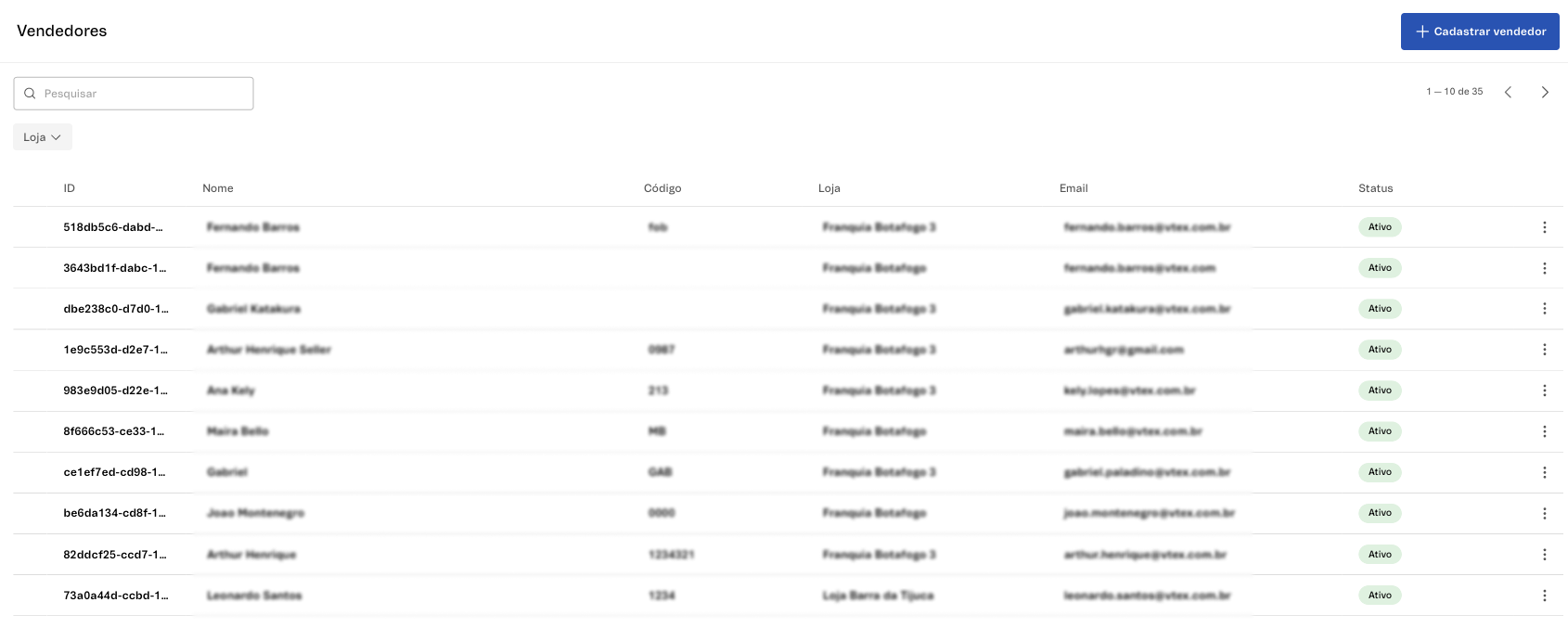 - Loja: conta franquia em que o vendedor será cadastrado. Campo obrigatório.