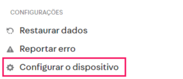 - No menu principal do VTEX Sales App, na seção Configurações, clique na opção Configurar o dispositivo, ilustrada abaixo.