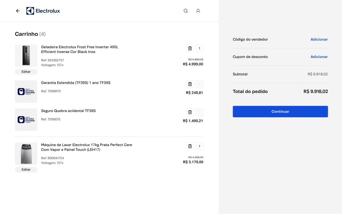 Após o processo finalizado, é possível visualizar em seu carrinho os serviços que foram selecionados com o valor total do pedido.