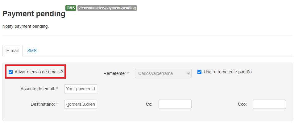 Como exemplo, usaremos o passo a passo de como desabilitar o email de pagamento de boleto pendente. Neste caso, o email é enviado 48 horas após a finalização do pedido. Vale lembrar que não há possibilidade de personalizar esse intervalo de tempo.