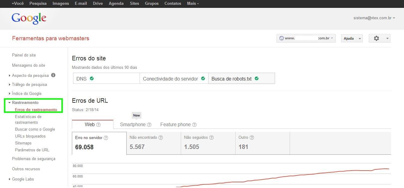Você poderá incluir esses links na planilha, fazendo referência à Home, ou coleção, o que for mais adequado à sua loja. Após a correção desses links você precisará voltar ao Web Master Tools, clicar em Rastreamento e depois em Erros de Rastreamentos.