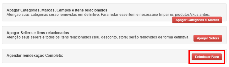{nomedaloja}.vtexcommercestable.com.br/admin/Site/FullCleanUp.aspx. - Clique no botão Reindexar Base.