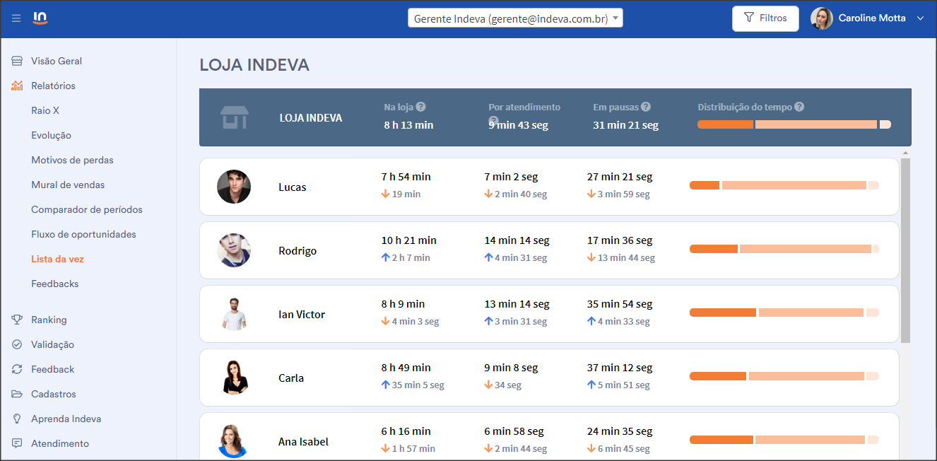 Use esse relatório para avaliar a usabilidade da Lista da Vez e otimizar o gerenciamento de tempo da equipe comercial.