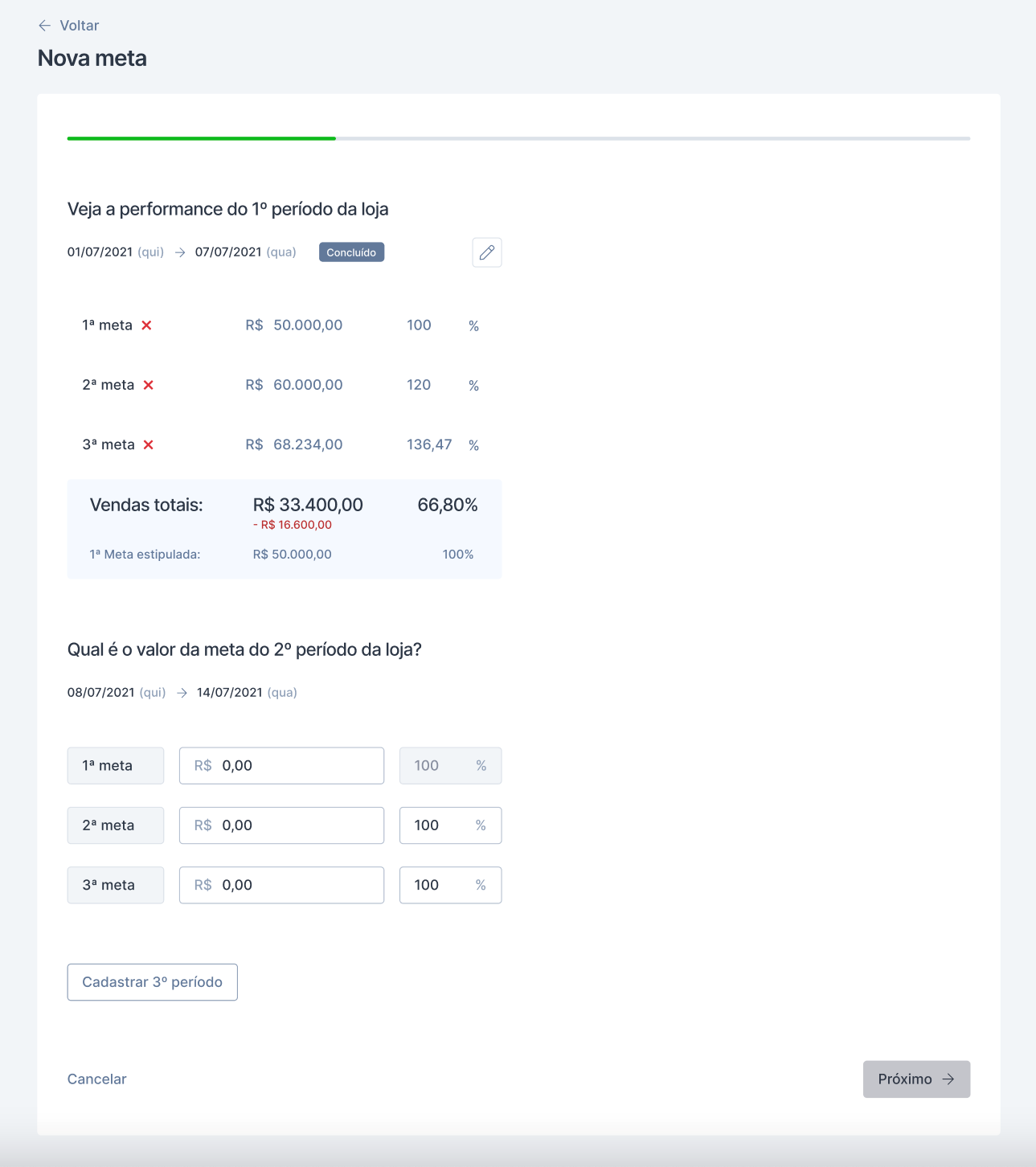 R$com um valor superior ao da meta anterior. - Para avançar para a próxima etapa, clique em