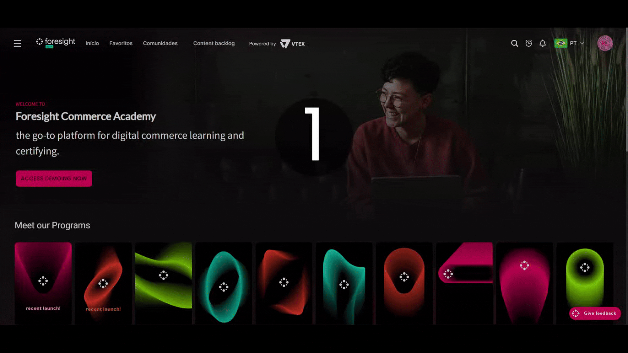 Foresight Commerce Academy é uma plataforma educacional promovida pela VTEX destinada a compartilhar conhecimento sobre diversos temas relacionados a negócios, arquitetura e tecnologia VTEX.