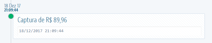 A data e o horário de captura de um pagamento podem ser consultados na linha do tempo da transação.