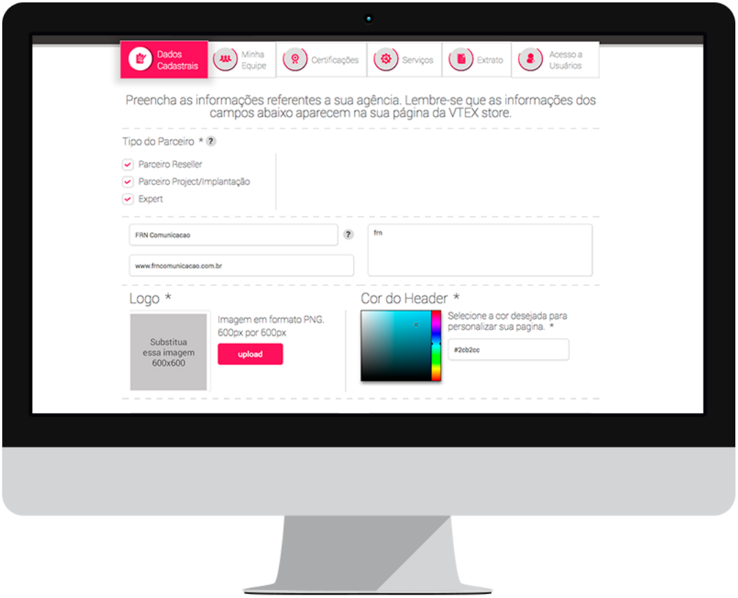 Este é o primeiro passo, nele você deve preencher os dados cadastrais da sua agência. Estes dados serão replicados na VTEX STORE.