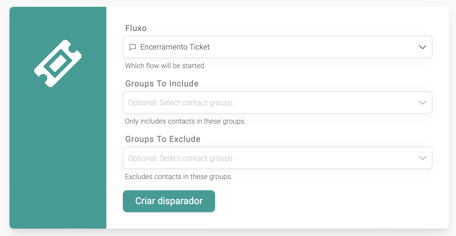 Este pode ser um fluxo extremamente simples, onde a única ação é remover o contato do grupo de controle Atendimento Humano: