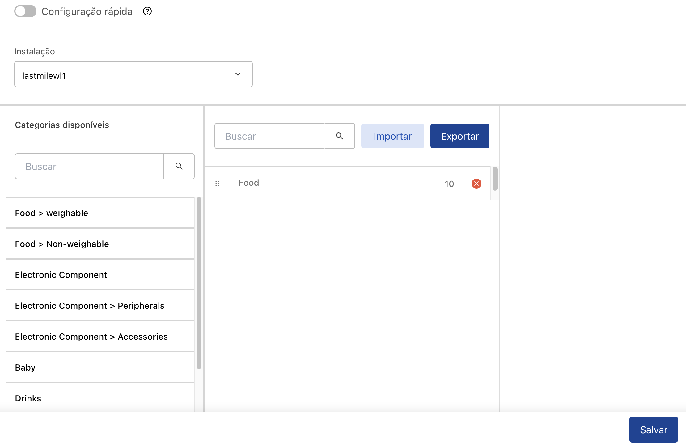 Nesta aba, você pode configurar a ordem das categorias em que os pedidos serão separados. Dessa forma, o separador consegue organizar o fluxo de coleta dos produtos para a montagem dos pedidos com eficiência.