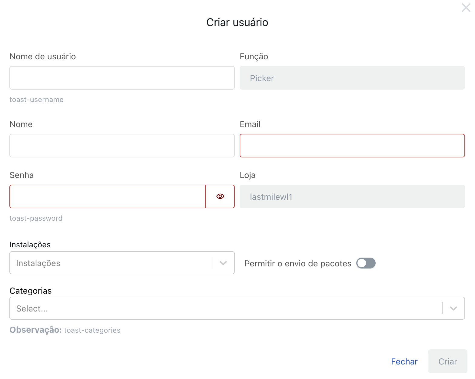 2. Selecione o tipo de permissão que deseja para o seu novo usuário: Admin ou Separador.