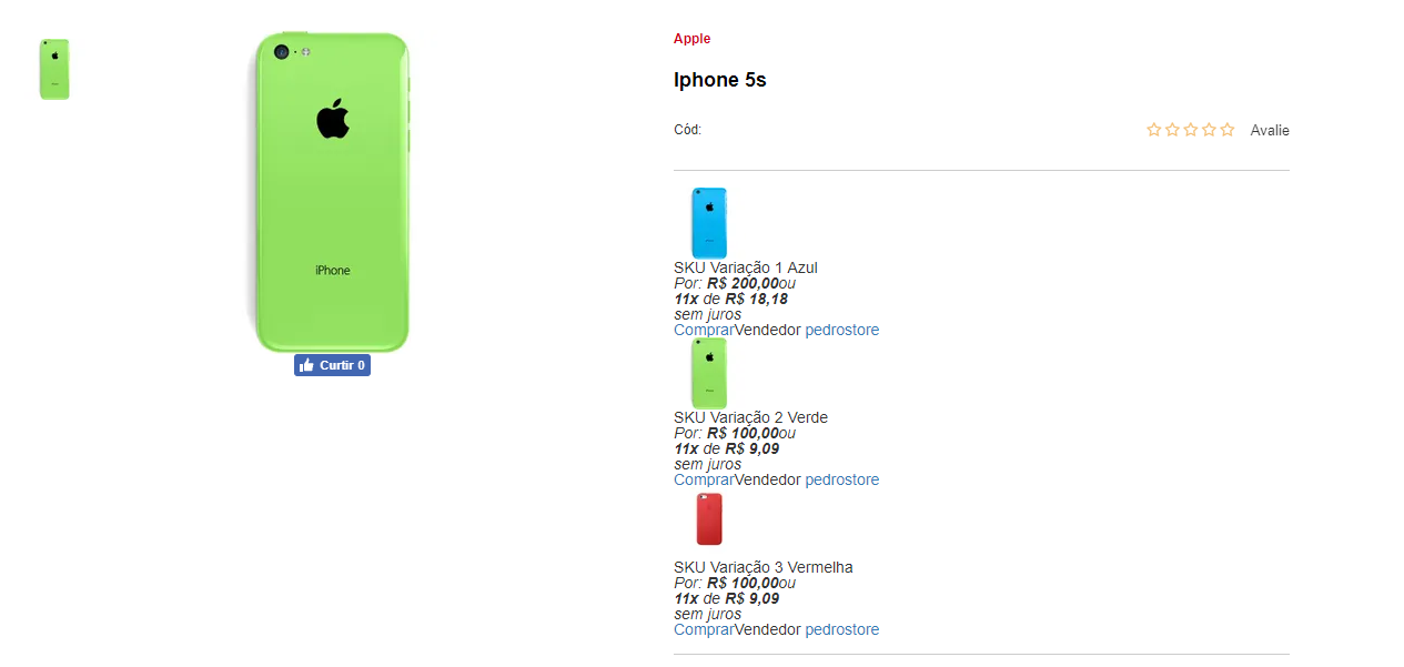 - Lista de SKUs: todos os SKUs do departamento ou categoria em questão serão exibidos no formato de lista. Cada um com seu botão Comprar do lado.