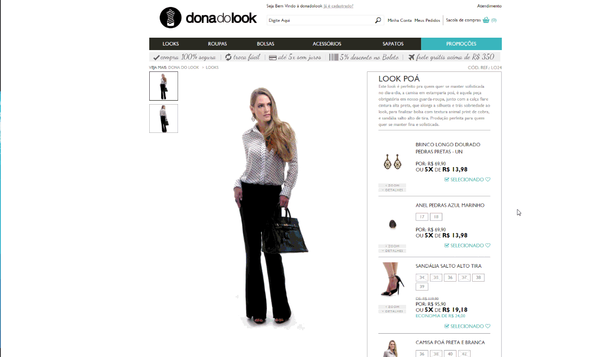 En el layout arriba se pueden seleccionar los ítems del kit de look que el cliente quisiera comprar y luego hacer clic en “Comprar Produtos Selecionados”.