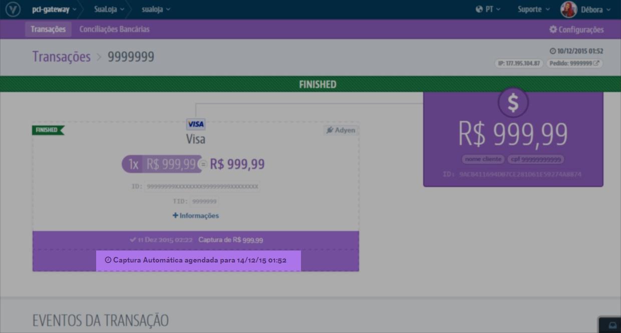 No lado direito há uma caixa que contém o valor total do pedido, os dados do cliente, o ID desse pedido e o número de identificação do Antifraude (caso exista na operação).