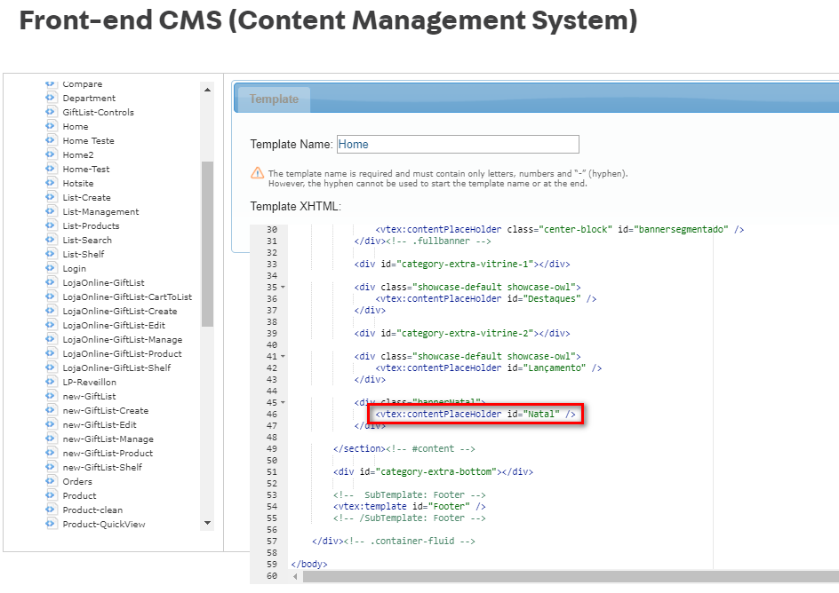 Este é o controle de placeholders: <vtex:contentPlaceHolder id="" />