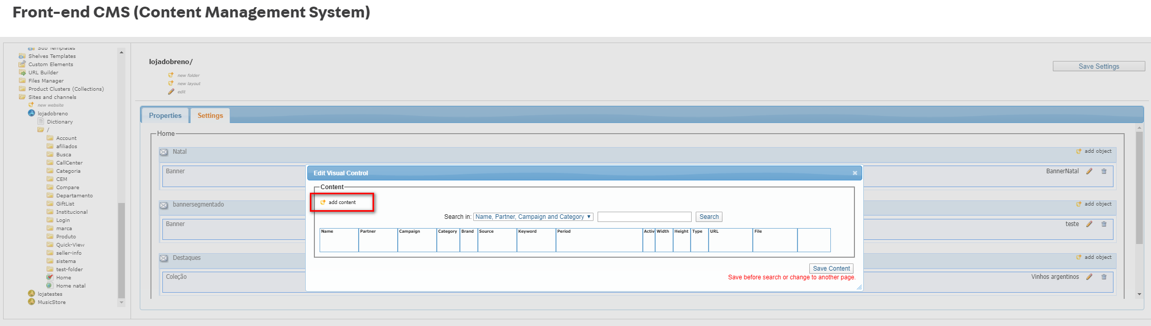 Ao final, clique em Add Content List e depois salve o conteúdo.